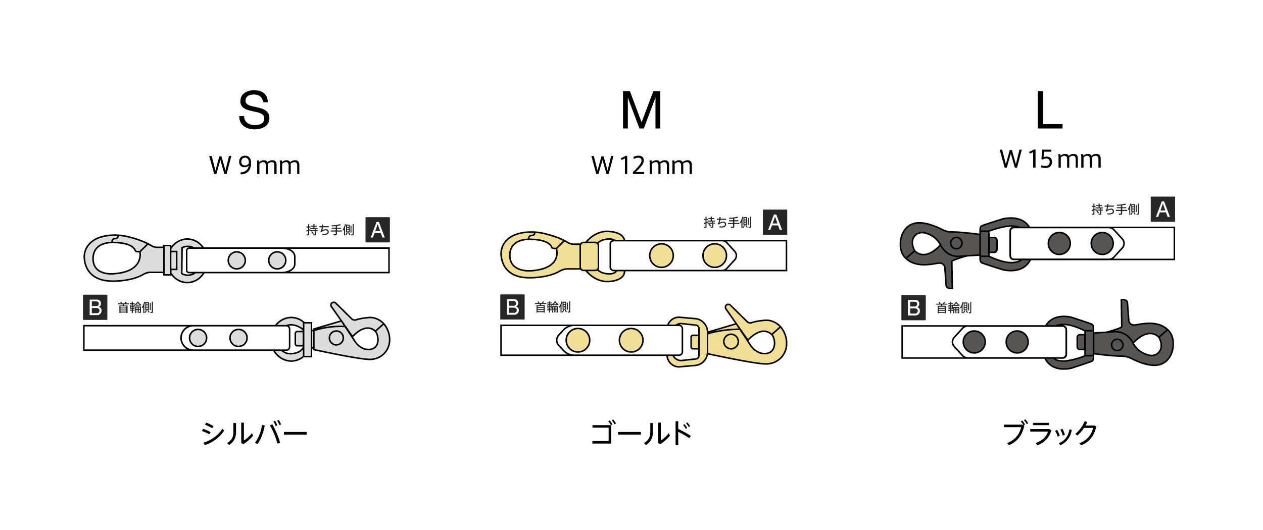 革の色・金具の色・サイズを